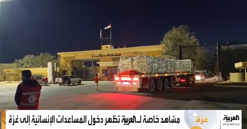 وأظهرت الصور تحرك 400 شاحنة مساعدات إنسانية متنوعة إلى غزة في السادسة من صباح اليوم الأحد (0300 بتوقيت غرينتش)، وذلك من معبر رفح إلى معبري كرم أبو سالم والعوجة تمهيداً لدخولها إلى غزة.